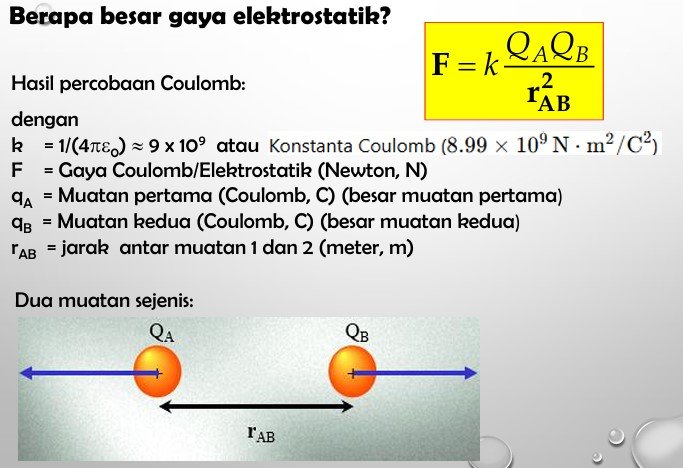 - Elektrostatika adalah cabang fisika yang mempelajari gaya dan